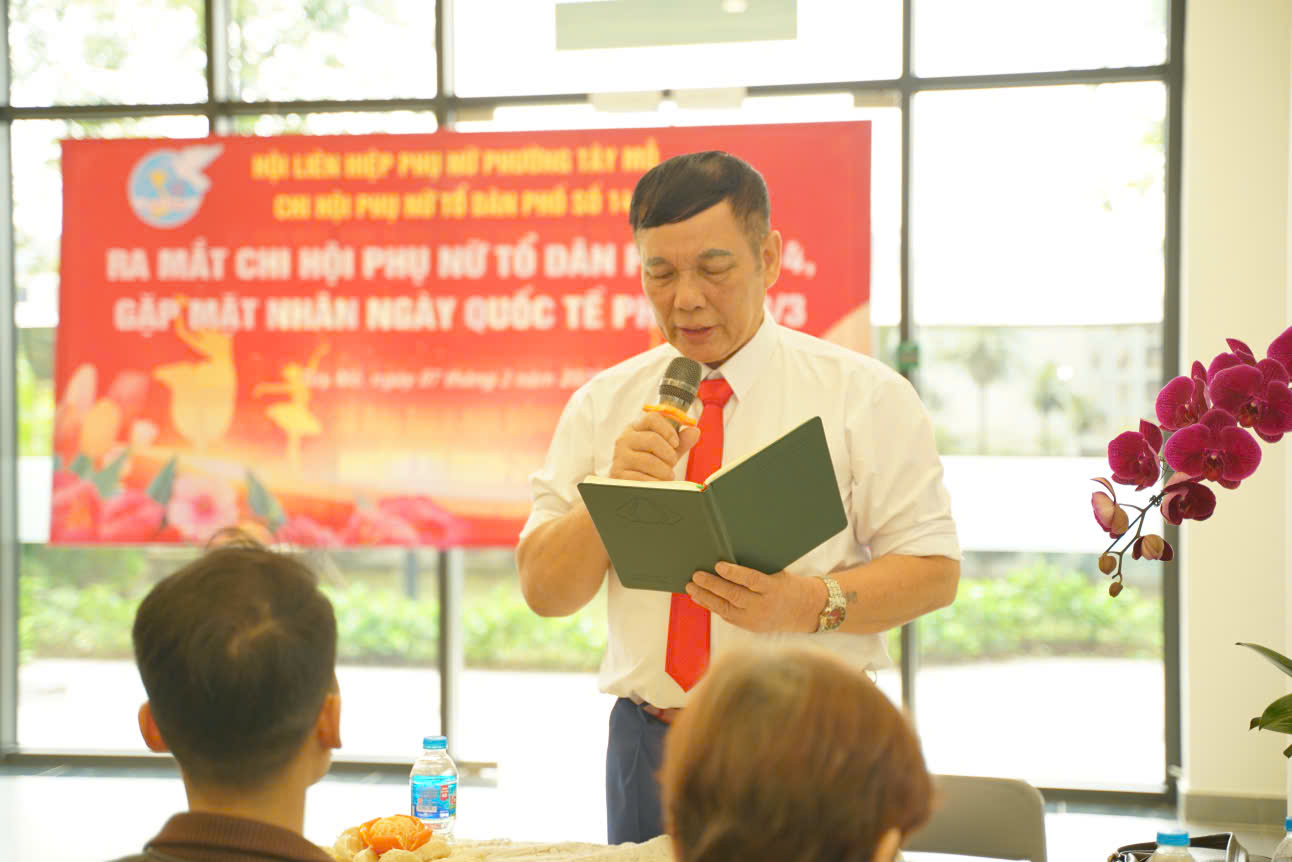 Nhân dịp chào mừng kỷ niệm Ngày Quốc tế Phụ nữ 8/3, Chi hội Phụ nữ Tổ dân phố 14 đã long trọng tổ chức Lễ công bố Quyết định thành lập Chi hội Phụ nữ Tổ dân phố 14 trực thuộc Hội Liên hiệp Phụ nữ phường Tây Mỗ. Đây là dấu mốc quan trọng, đánh dấu sự hình thành và phát triển của tổ chức Hội tại khu dân cư, góp phần tăng cường sự đoàn kết, gắn bó giữa các hội viên phụ nữ trên địa bàn.
